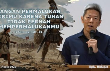 JANGAN PERMALUKAN DIRIMU, KARENA TUHAN TIDAK PERNAH MEMERMALUKANMU 1 Samuel 17:10-11, 26 (26) Lalu berkatalah Daud kepada orang-orang yang berdiri di dekatnya: “Apakah yang akan dilakukan kepada orang yang mengalahkan orang Filistin itu dan yang menghindarkan cemooh dari Israel? Siapakah orang Filistin yang tak bersunat ini, sampai ia berani mencemoohkan barisan dari pada Allah yang […]